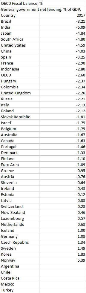 OECD 2017 Fiscal balance